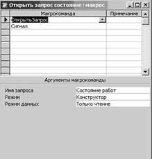 , при ее нажатии открывается запрос в режиме конструктора. Запрос доступен в режиме чтения, так как в макросе указано только чтение.