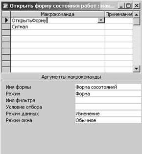 Рисунок 18. Структура макроса Открытие форму Состояние работ