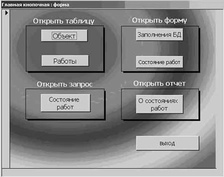 который будет использоваться в качестве титульной страницы: Выполнение работ на каждом объекте. Затем откроем запрос под именем Запрос Данных о работах