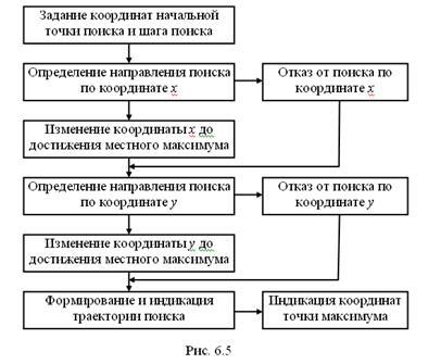 , поэтому поиск завершается за два этапа: поиск по координате х и поиск по координате у. Структурная схема программы виртуального прибора приведена на рис. 5.