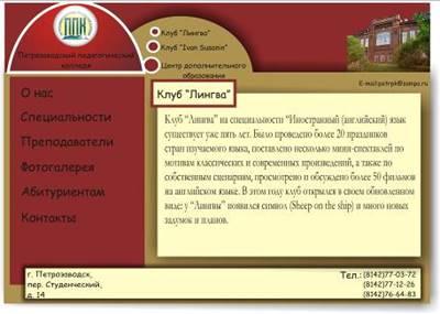 Верхняя навигация электронной визитки ГОУ «Петрозаводский педагогический колледж» представлена следующими ссылками: