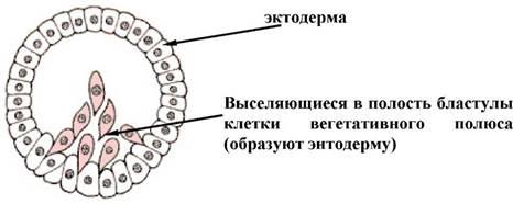 При цьому відбувається укручування всередину зародка зовнішнього пласта клітин, що збільшується в розмірах, який поширюється по внутрішній поверхні клітин (мал. 2), що залишаються зовні.