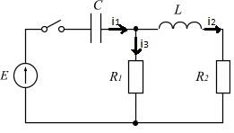 Переходной процесс в схеме начинается в момент включения ключа К. До этого момента времени все токи и напряжения равны нулю.