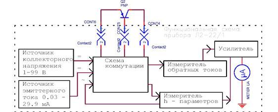 Функциональная схема прибора для определения малосигнальных h- параметров биполярного транзистора: