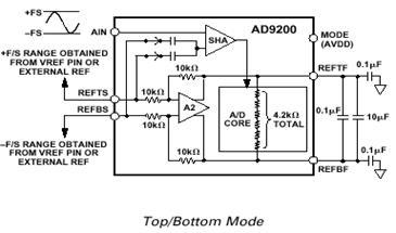 АЦП работает в режиме Top/Bottom (На вход MODE подается напряжение питания АЦП AVDD)
