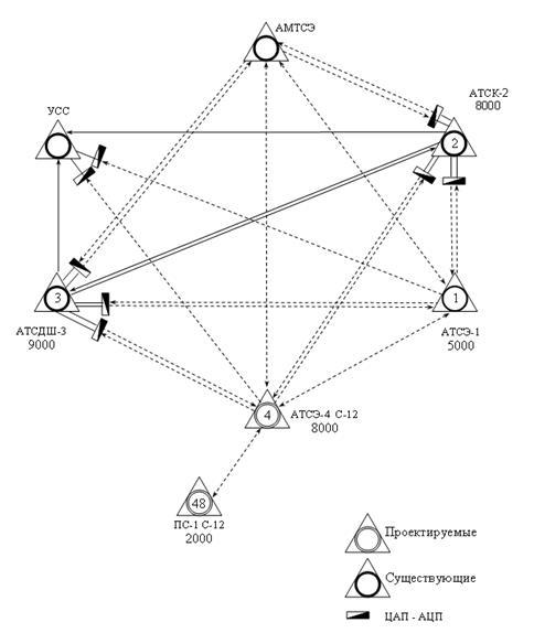 1. Составить конфигурацию телефонной сети по заданному числу действующих АТС, АМТС, узла спецслужб и проектируемой АТСЭ С-12 с подстанциями