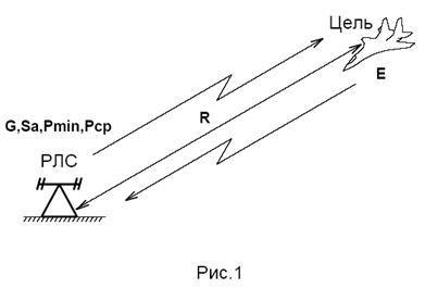 Рассчитаем среднюю мощность РЛС, исходя из обеспечения необходимой энергетической дальности, применив основное уравнение радиолокации (Рис.1):