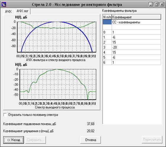Также критерием эффективности служит коэффициент улучшения отношения с/п, в спроектированном фильтре он составляет 20,02 дБ.
