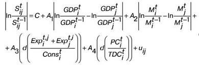 - експорт країни i у странуj у період t;