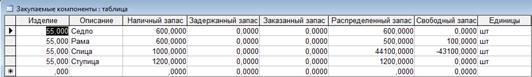 Рисунок 2– Таблица «Закупаемые компоненты