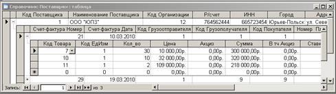 На основе входных документов создается БД, состоящая из таблицы Основной, Подчиненной и 7 справочников.