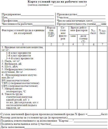 Результаты аттестации заносят в «Карту условий труда на рабочем месте» (табл. 3.1). По итогам аттестации рабочим начисляется доплата в следующих размерах к тарифной ставке (окладу), %: