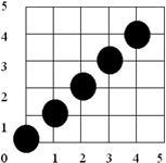 Результат показаний на рис. 3.4 і збігається з очікуваним. Помітимо, що точка растра з координатами (5,5) не активована. Цю точку можна активувати шляхом зміни циклу for-next на 0 to Dx. Активацію точки (0,0) можна усунути, якщо поставити оператор Plot безпосередньо перед рядком next i.