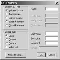 Рис. 9 - Диалоговое окно задания цикла изменения параметров в режиме DCSweep