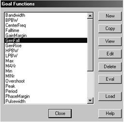 Например, многовариантный анализ переходных процессов при изменении амплитуды А гармонического сигнала осуществляется следующим образом: в описании синусоидального источника VSIN атрибуту VAMPL присваивается значение {A}. Далее после размещения на схеме символа стандартного компонента PARAMETRS двойным щелчком мыши вызывается диалоговое окно PartName:PARAM (рис. 11).