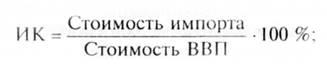 • импортная квота характеризует значимость импорта для народного хозяйства и отдельных отраслей по различным видам продукции:
