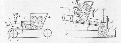 Схема работы ленточно- Схема работы вибролоткового го питателя бетоноукладчика питателя бетоноукладчика