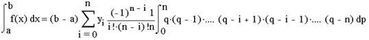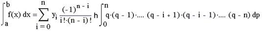 де q=(x-x0) /h – крок інтерполяції, замінимо підінтегральну функцію f(x) інтерполяційним багаточленом Лагранжа: