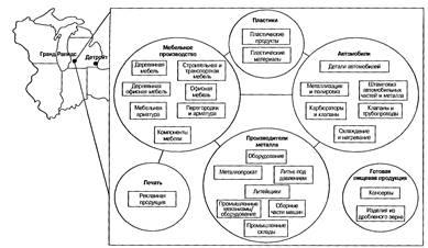 Профессор Портер приводит следующий пример формирования крупных кластеров Гранд Рапидс в США (рис. 1).