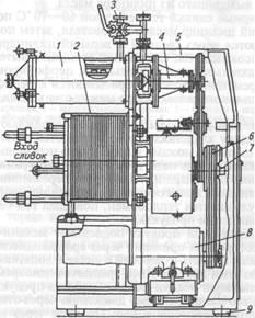 вытеснительный барабан; 5 — кожух; 6 —