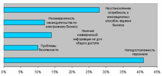 Россия, несмотря на высокие темпы развития ИКТ в последние десятилетия, не смогла обеспечить разрыва с промышленно-развитыми странами в области автоматизации общества. Отчасти данное положение вызвано такими причинами как затяжной кризис в экономике, низкий уровень жизни населения, но, вместе с тем, недостаточное развитие ИКТ определяется рядом факторов, создающими искусственные препятствия для ускорения автоматизации и эффективного использования ИКТ. К числу негативных факторов относятся: