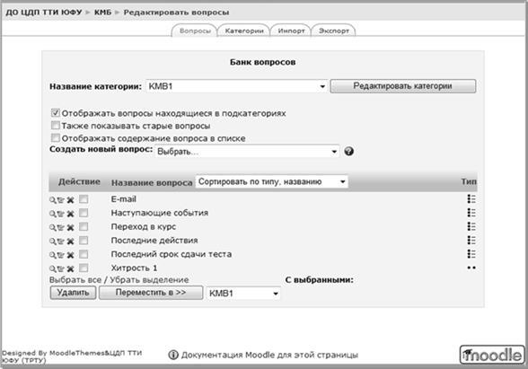- переместить в другую категорию: с помощью кнопки "Переместить в >>", предварительно выбрав несколько вопросов и указав конечную категорию;