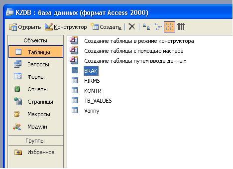 Следующим шагом будет создание физической модели БД. Необходимо создать новую пустую БД ACCESS, а затем средствами Erwin перенести структуру в эту БД. В результате будет получена БД Access – рис 3.4