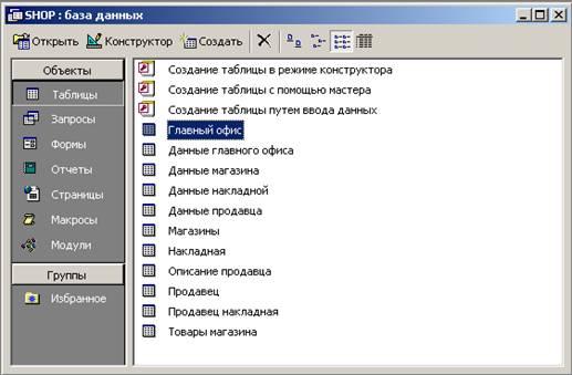Microsoft Access – это СУБД предназначенная для хранения и поиска информации, её представления в удобном виде и автоматизации часто повторяющихся операций (рис. 5). Чтобы реализовать базу данных в access, надо ввести через режим конструктора свою модель. Для начала надо ввести название таблиц и всех их атрибутов. Здесь же задается тип данных и первичный ключ (рис. 6).