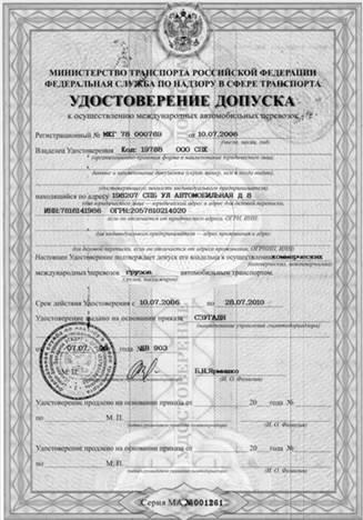 Рис.2 Удостоверение допуска к осуществлению международных автомобильных перевозок