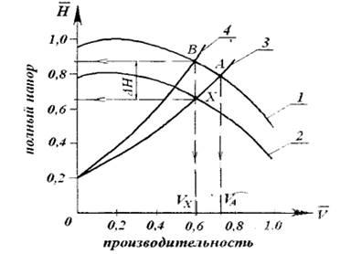 режим работы насоса в сети с дросселем; -Х-