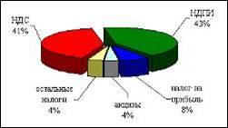 Рисунок 1. Структура поступлений администрируемых ФНС России доходов в федеральный бюджет по видам налогов