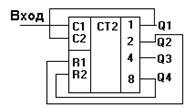 - вход R служит для установки счетчика в 0,
