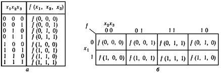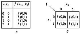 Различные логические переменные могут быть связаны функциональными зависимостями. Например, выражение у = f (x1, х2) указывает на функциональную зависимость логической переменной у от логических переменных х1 и х2, называемых аргументами или входными переменными.