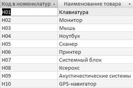 1. Номенклатура товара