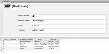 Затем в режиме таблицы ввел записи: