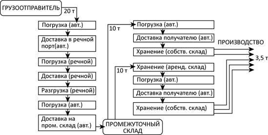 Осуществление поставок груза в соответствии с таблицей 1.1 позволит рационально использовать как речной, так и железнодорожный транспорт и минимизировать расходы на хранение груза на промежуточном складе.