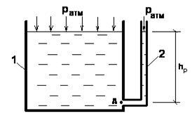 Пьезометр обычно представляет собой вертикальную стеклянную трубку, нижняя часть которой сообщается с исследуемой точкой в жидкости, где нужно измерить давление (например, точка А на рис. 3), а верхняя её часть открыта в атмосферу. Высота столба жидкости в пьезометре hp