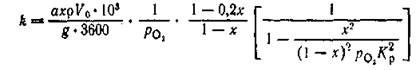 /ч; p— парциальное давление кислорода в исходном 'газе, кгс/см2