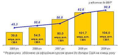 Рисунок Д.1. - Валовий зовнішній борг України 2005-2009 рр.