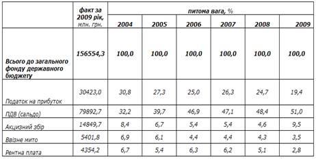 Таблиця Е.1.- Структура доходів загального фонду Державного бюджету України в 2004-2009 рр.