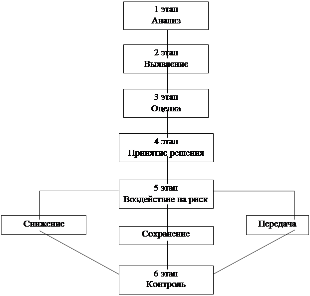 Существуют определенные этапы управления риском, которые помогают эффективно воздействовать на риск, они представлены в приложении 1.