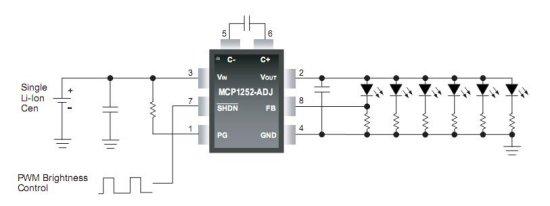 Рис. 1. Светодиодный драйвер на переключаемых конденсаторах на MCP1252