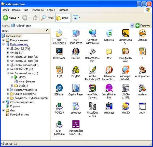 Рисунок 3. Отображение ресурсов ПК. Открыта системная папка «Рабочий стол»