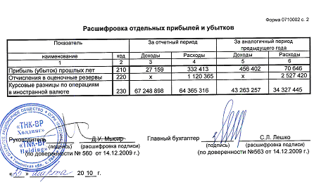 Основой анализа финансово-экономической деятельности «ТНК-ВР Холдинг», проводимого в данной работе, являются формы отчетности №1 «Бухгалтерский баланс» и №2 «Отчет о прибылях и убытках» за 2009 год.