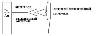 Создаваемый нами реальный эффективный биосенсор должен быть избирательный именно к антигенам P. aeruginosa АТСС 27853. С этой целью необходимо так модифицировать рабочую поверхность биосенсора, чтобы она была избирательна лишь к анализируемому антигену и давала бы аналитический сигнал по крайней мере в 10 раз превышающий сигнал, полученный от чистого электрода Pt. Ниже мы опишем роботу модифицированных Pt и Au подкладок, которые нам удалось получить, и которые являются избирательными и более чувствительными по отношению к антигенам P. aeruginosa АТСС 27853.