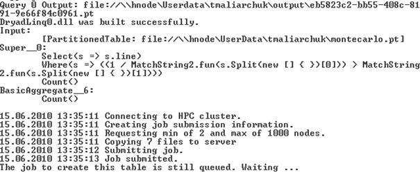 Після завершення виконання роботи Dryadна кластері провайдер Dryadповертає оброблені дані до програми.