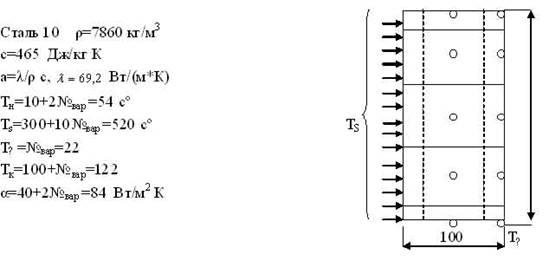 Необходимо нагреть груз прямоугольного сечения. Теплота с помощью нагревателя подводится с одной из сторон. Нагреватель должен работать до тех пор, пока температура противоположной стороны не достигнет заданного значения Tk