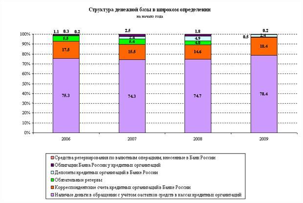 8. Структура денежной базы в широком определении. Данные Федеральной службы Государственной статистики. 2009г.