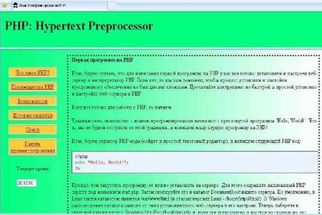 Мною был разработан сайт, позволяющий получить начальную информацию о языке PHP. Сайт предоставляет начальные сведения о языке. Система поиска упрощает доступ к информации.