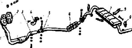1-паливо підкачуючий насос; 2-карбюратор; 3-паливний бак; 4-глушник; 5-фільтра; 6-паливопровід.